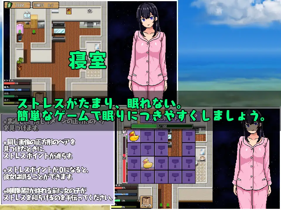 This is a life simulation game where you eat, work and sleep.