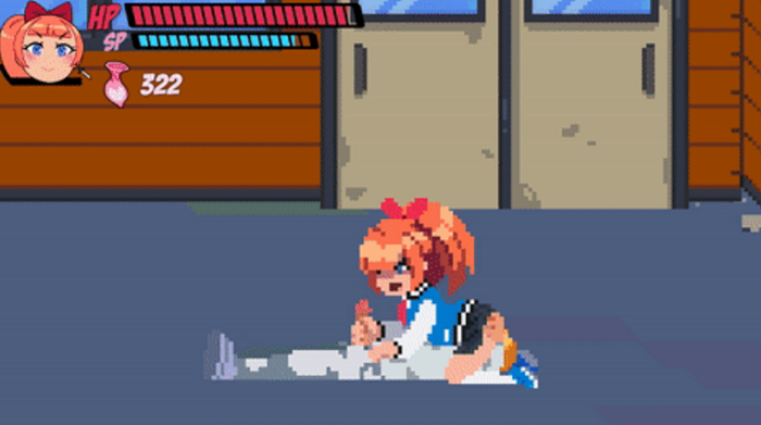 Unique “Finishing Moves” and Power-Ups: Filling up the special meter allows Kyoko to perform lewd “finishing moves” on downed enemies. These moves add humor and personality to the game, although they’re not exactly sexy. You can also collect different outfits for Kyoko, adding a light customization aspect to the gameplay. This feature gives the game some replayability, letting players experiment with different styles.